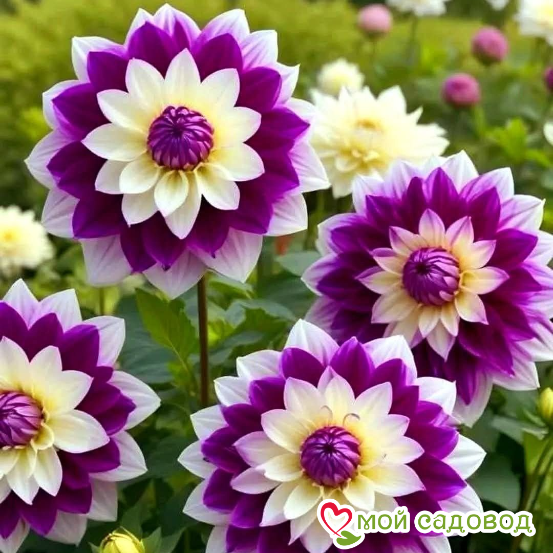 Георгин (Dahlia) — род многолетних травянистых клубневых растений семейства Астровые (Asteraceae) или Сложноцветные (Compositae). Георгины родом из горных районов Мексики и Центральной Америки были завезены в Европу в конце XVIII века и быстро завоевали популярность благодаря своей красоте и разнообразию форм и окрасок. На сегодняшний день существует более 42 видов георгинов и десятки тысяч сортов, различающихся по высоте куста, форме и размеру цветков, окраске и махровости. Внешний вид и строение: Георгин — это травянистое растение с клубневидными корнями, которые служат для запасания питательных веществ. Клубни георгинов имеют продолговатую или веретенообразную форму и могут быть разного размера, в зависимости от сорта. Стебли георгинов прямостоячие, полые, ветвистые, высотой от 30 см до 2,5 метров и более, в зависимости от сорта. Листья георгинов супротивные, перистые или дважды перистые, зубчатые по краю, обычно зелёные, но у некоторых сортов могут быть красноватыми или пурпурными. Цветки георгинов — это сложные соцветия, представляющие собой корзинки, состоящие из язычковых и трубчатых цветков. Язычковые цветки обычно крупнее и имеют разнообразную форму и окраску, а трубчатые цветки — мелкие и расположены в центре корзинки. У махровых сортов трубчатые цветки превращаются в язычковые, увеличивая махровость соцветия. Форма соцветий георгинов очень разнообразна: от простых ромашковидных до шаровидных, кактусовидных, помпонных и т.д. Диаметр соцветий варьируется от 5 до 30 см и более. Окраска соцветий также очень разнообразна и включает в себя практически все цвета и оттенки, кроме чистого синего и зелёного. Часто встречаются двухцветные и многоцветные сорта с контрастными полосками, пятнами, штрихами и другими узорами. Классификация георгинов: Существует несколько систем классификации георгинов, основанных на различных признаках. Наиболее распространенной является классификация по форме соцветий, согласно которой выделяют следующие основные группы: Простые (одноцветковые): соцветия с одним рядом язычковых цветков и открытой сердцевиной из трубчатых цветков. Анемоновидные (Anemone-flowered): соцветия с несколькими рядами язычковых цветков и выпуклой серединкой из удлинённых трубчатых цветков. Воротничковые (Collarette): соцветия с одним рядом крупных язычковых цветков и одним рядом более мелких язычковых цветков, образующих воротничок вокруг серединки из трубчатых цветков. Кувшинковые (Nymphaeaceae): соцветия с широкими, плоскими язычковыми цветками, расположенными горизонтально, напоминающими цветки кувшинок. Декоративные (Decorative): соцветия с многочисленными широкими язычковыми цветками, полностью закрывающими серединку. Шаровидные (Ball): соцветия шаровидной формы, с плотно свернутыми язычковыми цветками. Помпонные (Pompon): соцветия шаровидной формы, меньшего размера, чем шаровидные, с плотно прилегающими друг к другу язычковыми цветками. Кактусовые (Cactus): соцветия с узкими язычковыми цветками, свернутыми в трубочки, напоминающими иголки кактуса. Полукактусовые (Semi-cactus): соцветия с язычковыми цветками, свернутыми в трубочки не более чем наполовину. Смешанные (Miscellaneous): сорта, не относящиеся ни к одной из вышеперечисленных групп. Условия выращивания и уход: Георгины теплолюбивы и светолюбивы, поэтому для их выращивания необходимо выбирать солне